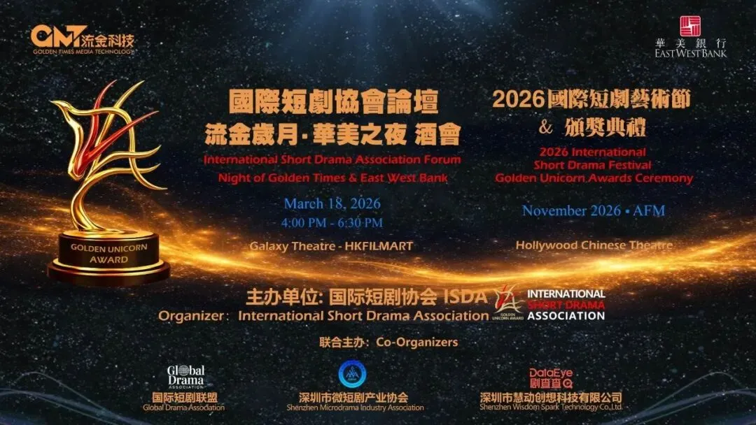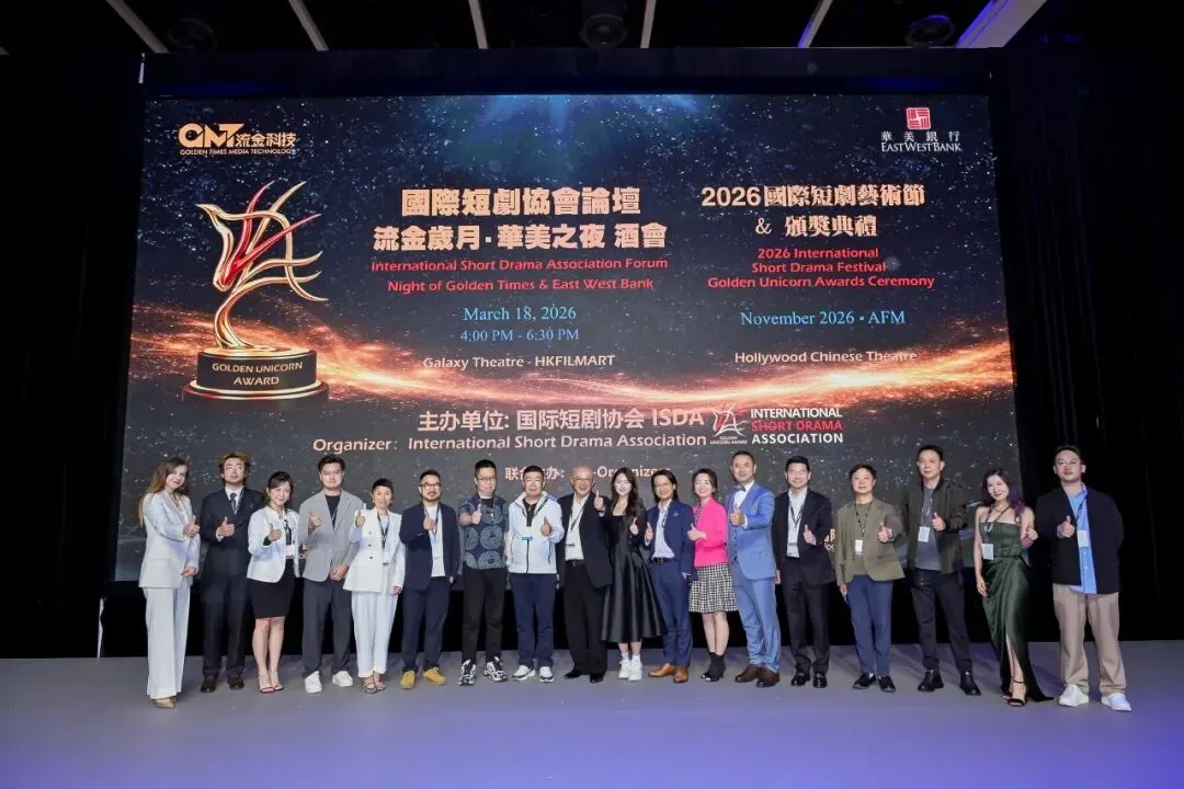 2026 年 3 月 18 日,国际短剧协会论坛暨流金岁月・华美之夜酒会于香港 FILMART Galaxy Theatre 隆重举办。
