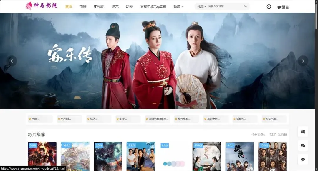 - 资源类型:电影、电视剧、综艺、动漫,额外包含「豆瓣电影Top250」专区