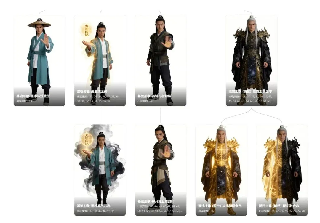 你瞧瞧,一个一个的一致性保持的都很好,而且年代和玄幻的风格都遵循了剧本的设定~