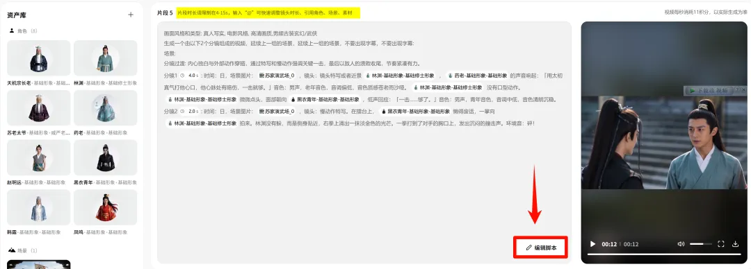 等了一阵之后,我这个剧本,它直接给我生了二十多个角色和100多个场景。