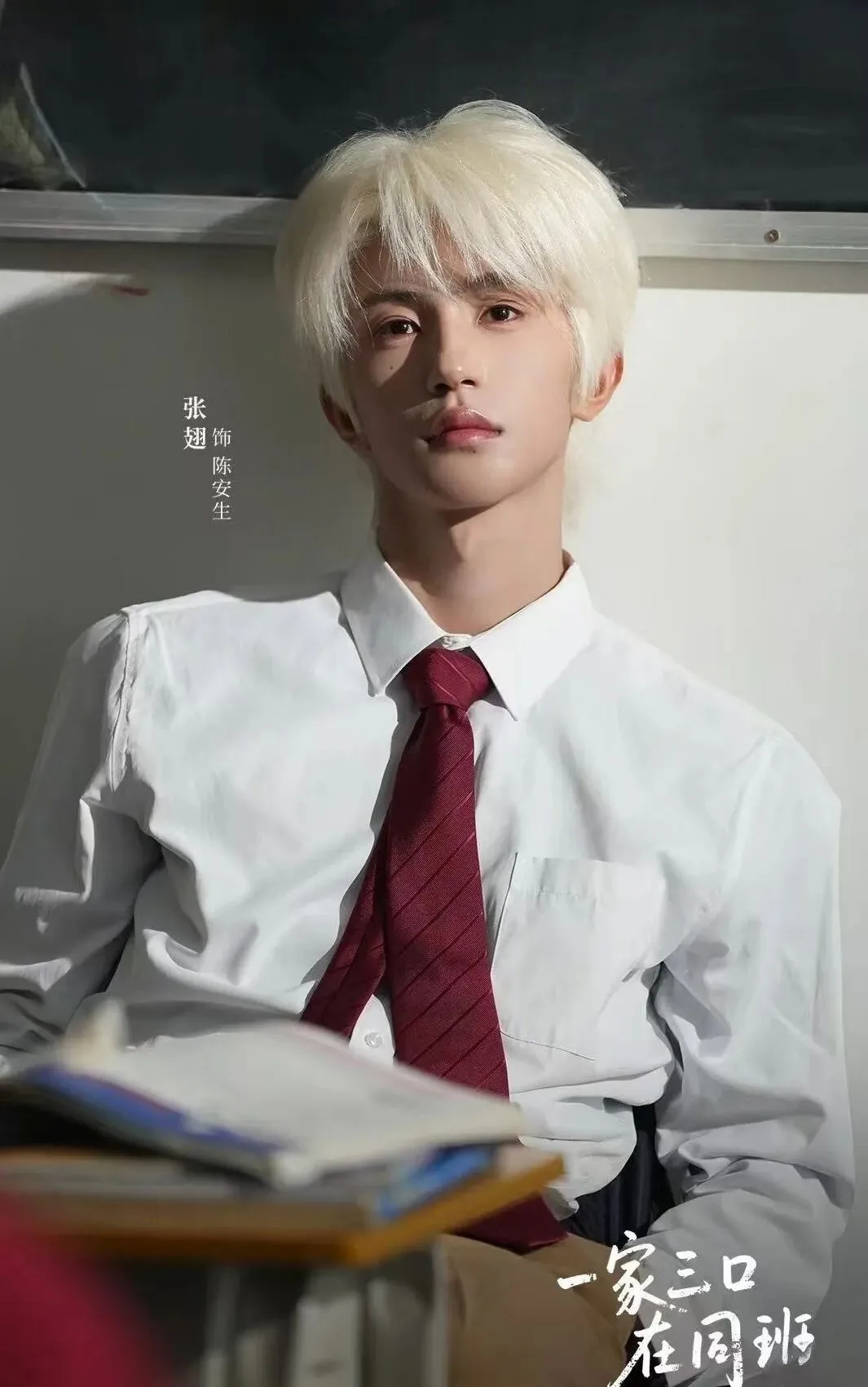 张翅在《一家三口在同班》里的白发校草形象也很出圈。穿着校服搭配白发,少年感很足,角色看着有点拽,其实内心很软,表演起来很自然,看剧的时候很容易被带入进去,笑点和日常感都挺足的。TOP 4 柯淳《为你钟情》