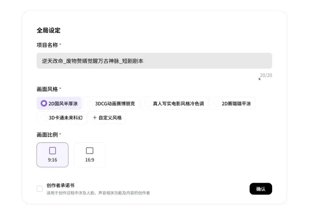 第一步:输入剧本大纲