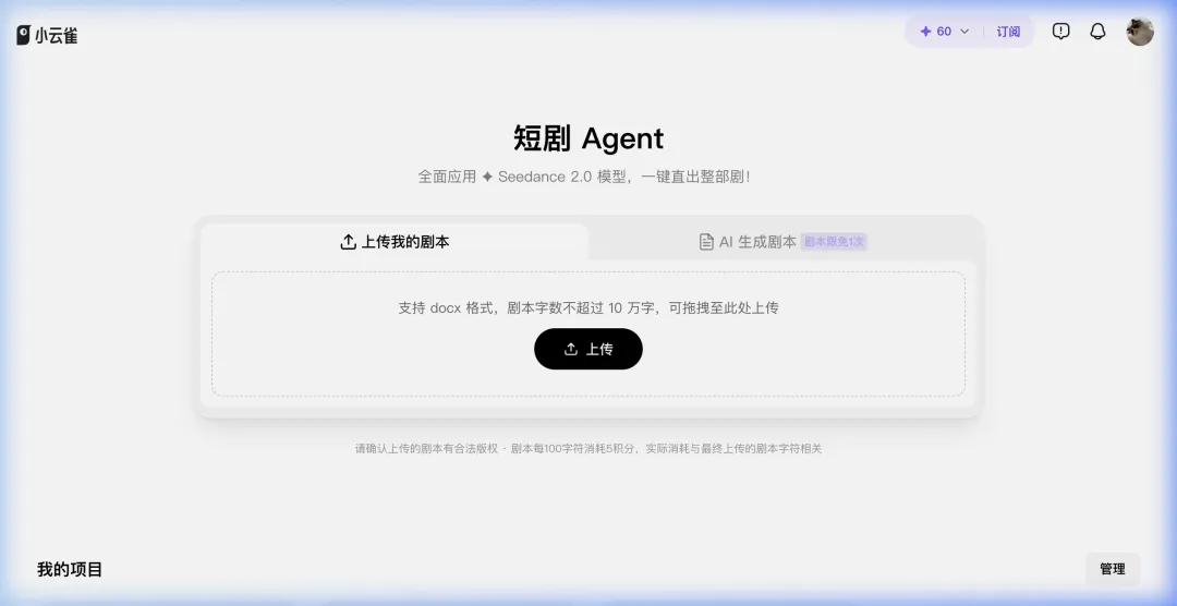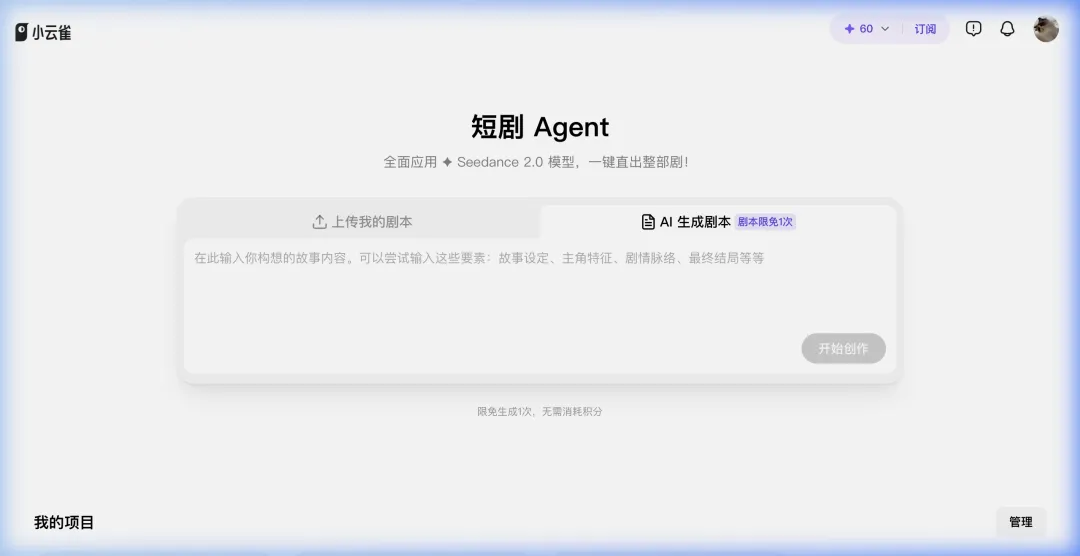 ⚡ 省钱技巧:新账号送60积分 + 首次AI生成剧本限免。利用这个免费额度,先做出你的第一部短剧看看效果,觉得OK再充值继续做。