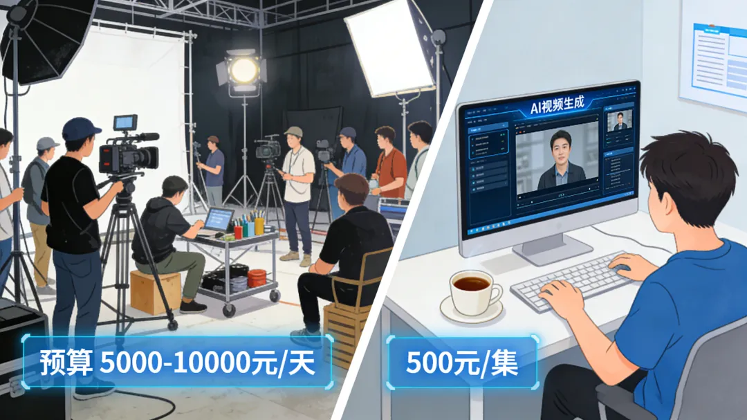 AI短剧怎么搞:一个运营加一套AI工具,一天出十集。不用看群演档期,不用担心演员耍大牌,不用半夜三点还在调灯光。AI不吃盒饭不喊累,比甲方听话。