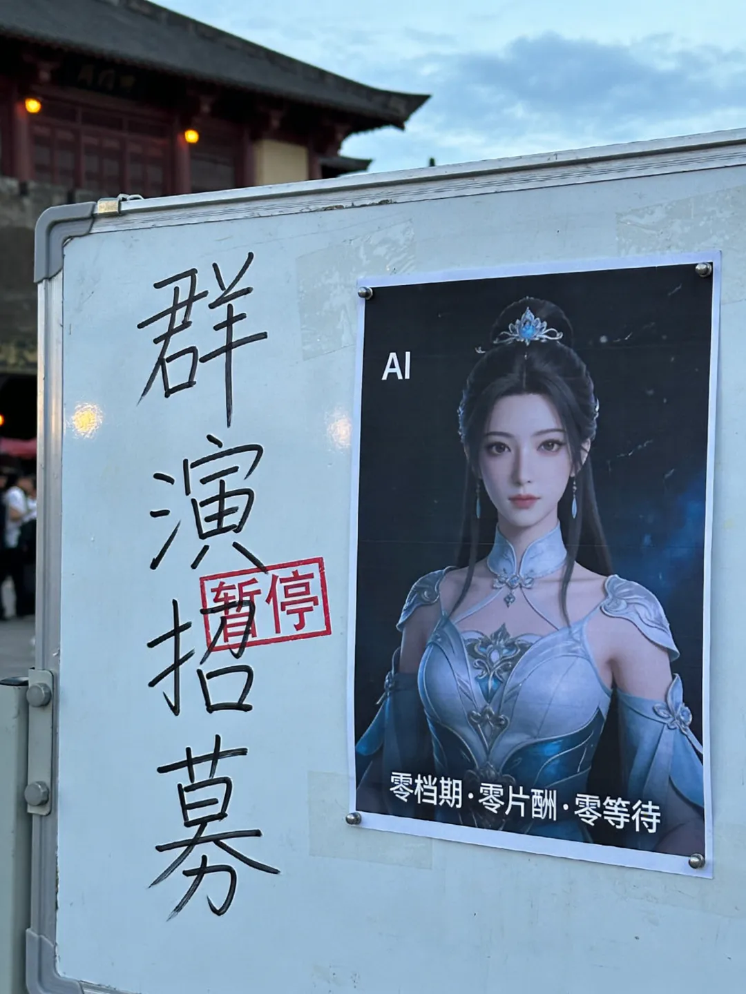 以前凌晨 5 点,演员群里几十条消息抢着要人。现在偶尔蹦出来一条:还是招演员,500 块,收肖像做 AI。比如说有“群演戏王”之称的吴维斌 39 岁,已经算是半失业状态了。他去问以前的导演,导演说:“现在用 AI 了,便宜,省事,还不会迟到。”