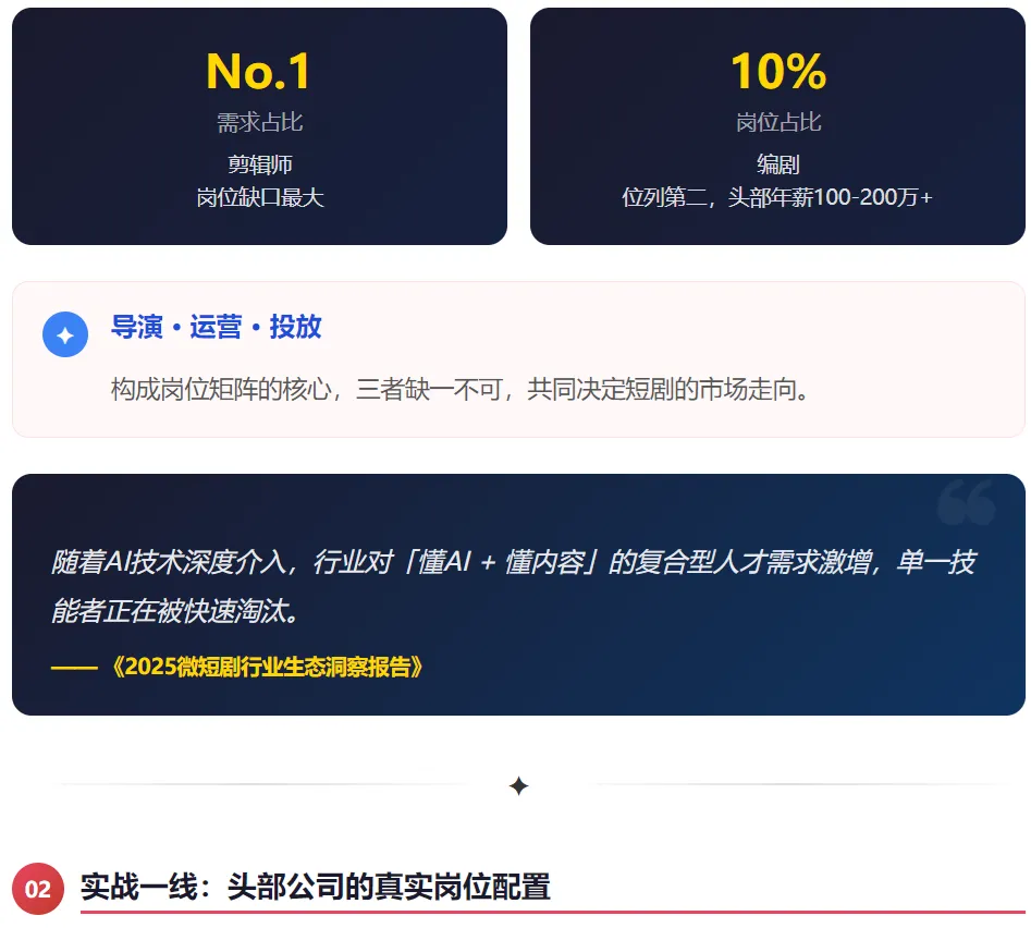 市场疯狂抢人的背后,AI短剧到底需要哪些人才?每个岗位做什么?值多少钱?这篇开篇,我们为你画一张完整的岗位图谱。