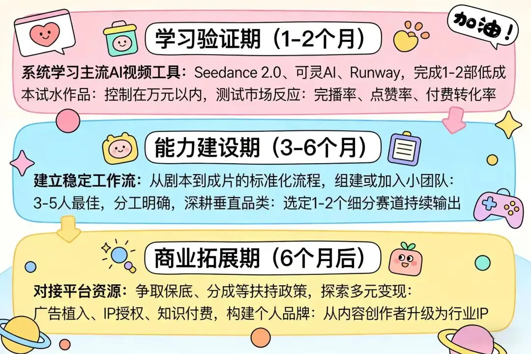 个人创作者精品化:AI降低技术门槛,但提升内容门槛。个人创作者必须聚焦细分赛道,用创意和故事建立护城河。表情包漫剧、垂直领域解说漫仍有空间。
