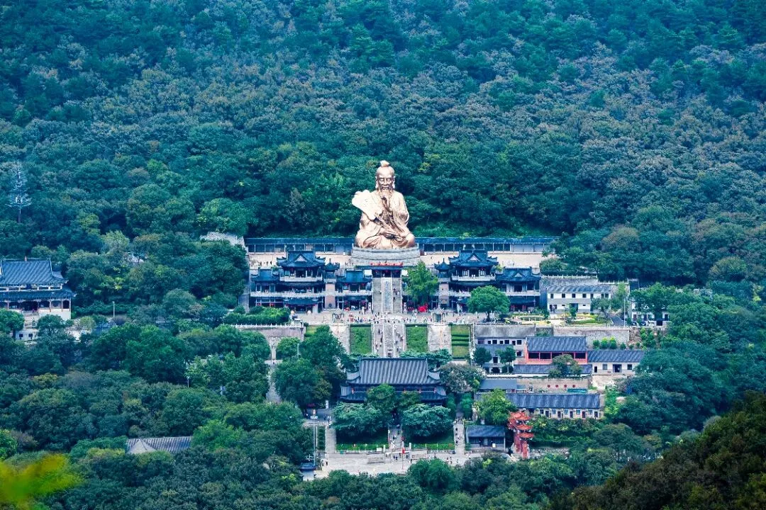 背靠老子神像、面朝群峰叠翠