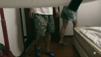第一种解释是,女生敲响了猥琐男房门,准备来个