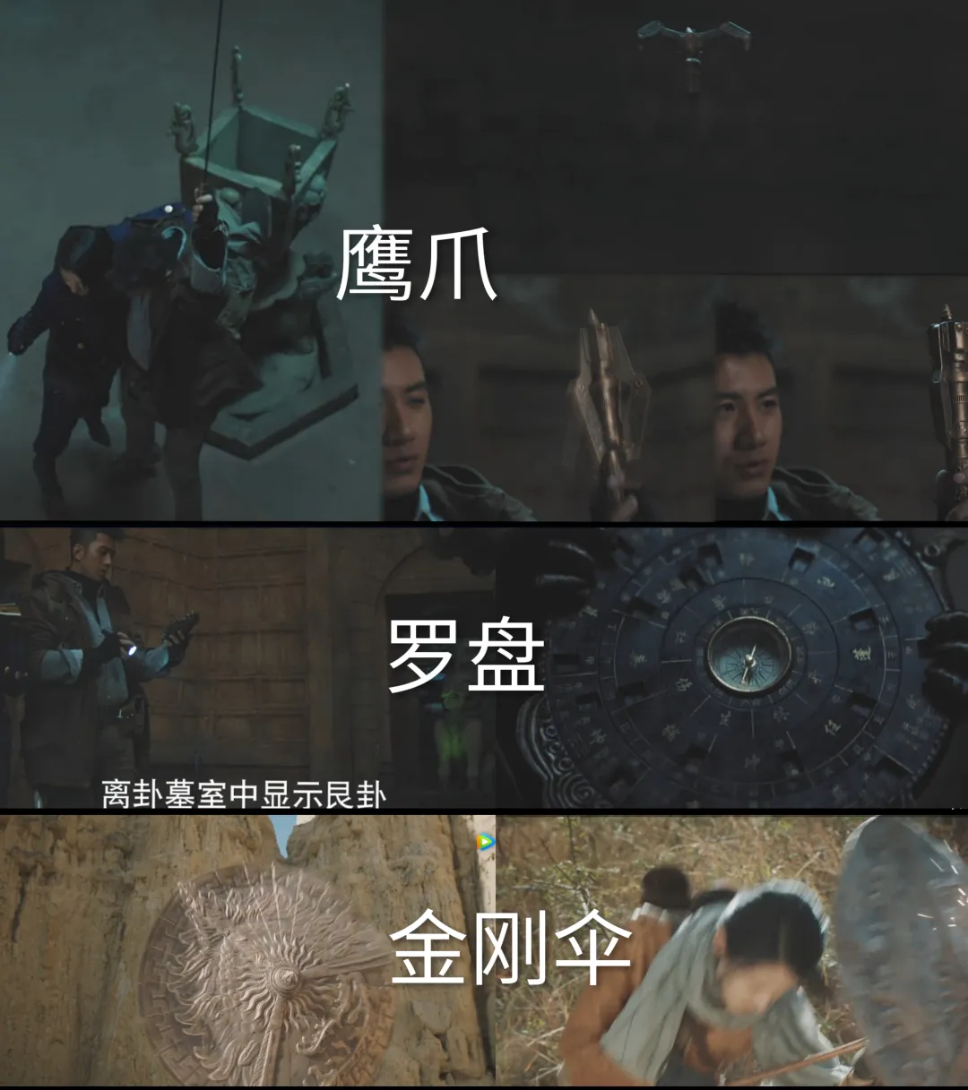 剧中的灵霄珠是剧名的来源,同样也是《鬼吹灯》里的雮尘珠。原著里的鹰爪、罗盘、金刚伞也都有所体现,外加各种机关、怪兽,该有的元素都配齐了。