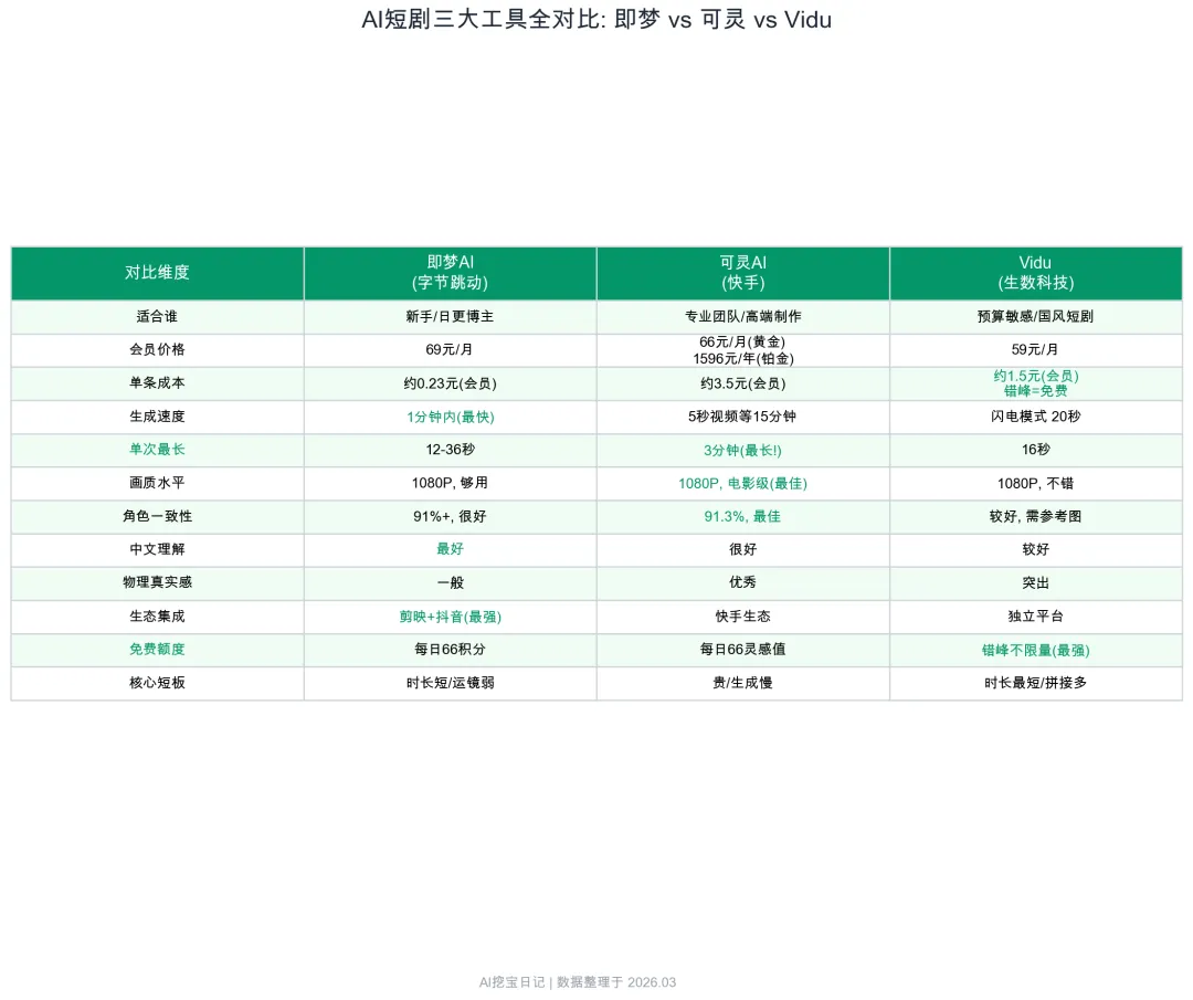 🔗 工具直达: - 即梦AI: jimeng.jianying.com - 可灵AI: klingai.com - Vidu: vidu.cn