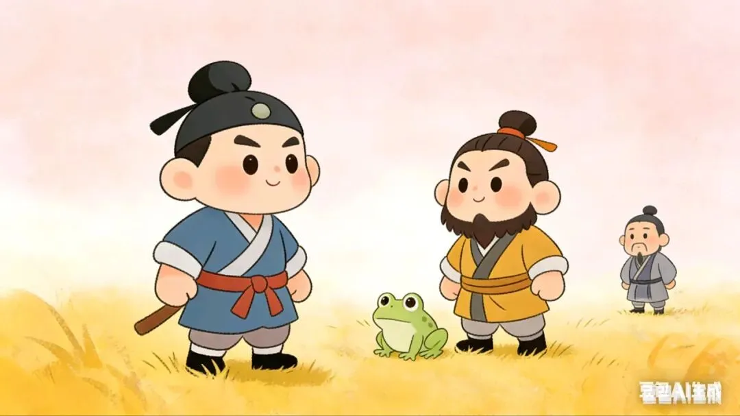 吴 用:(看着手里的“梁山人力资源与心理疏导有限公司”项目书,苦笑)这年头,军师也得搞副业,青蛙都成金牌咨询师了……不过,能救回一个是一个嘛。(青蛙蹦走,吴用也离开。土坑边,只剩下一块松动的“黄泥冈影视拍摄地,小心坑洞”的牌子在风中微微摇晃。)