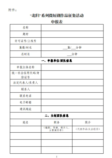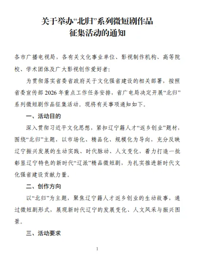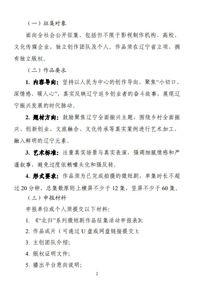 >关于举办“北归”系列微短剧作品征集活动的通知