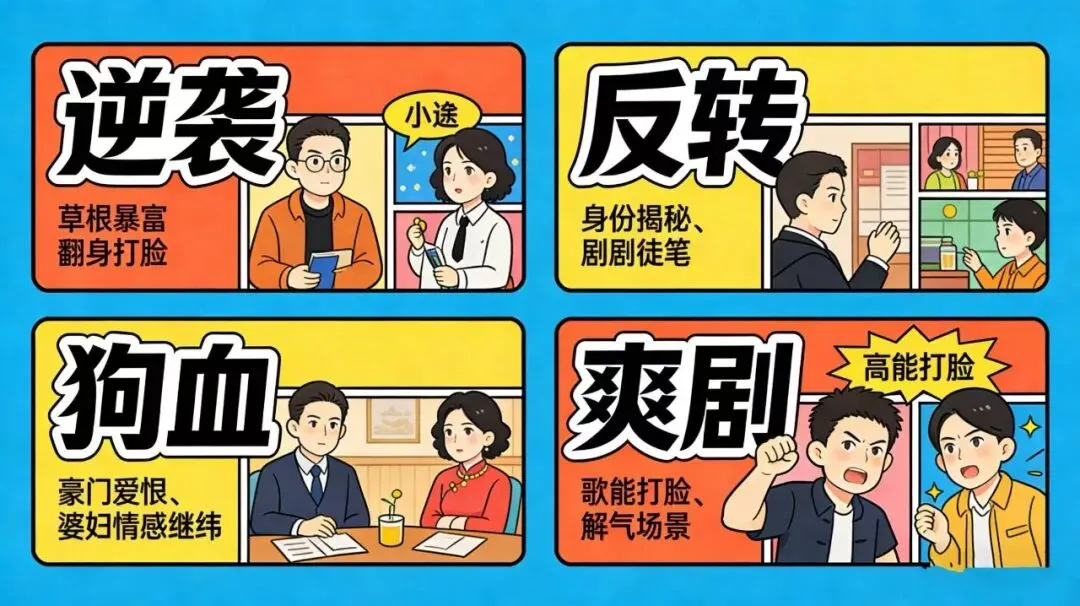 单条视频控制1-3分钟,只保留2-3个核心冲突点,全程高能、无废话,多埋伏笔吊胃口。