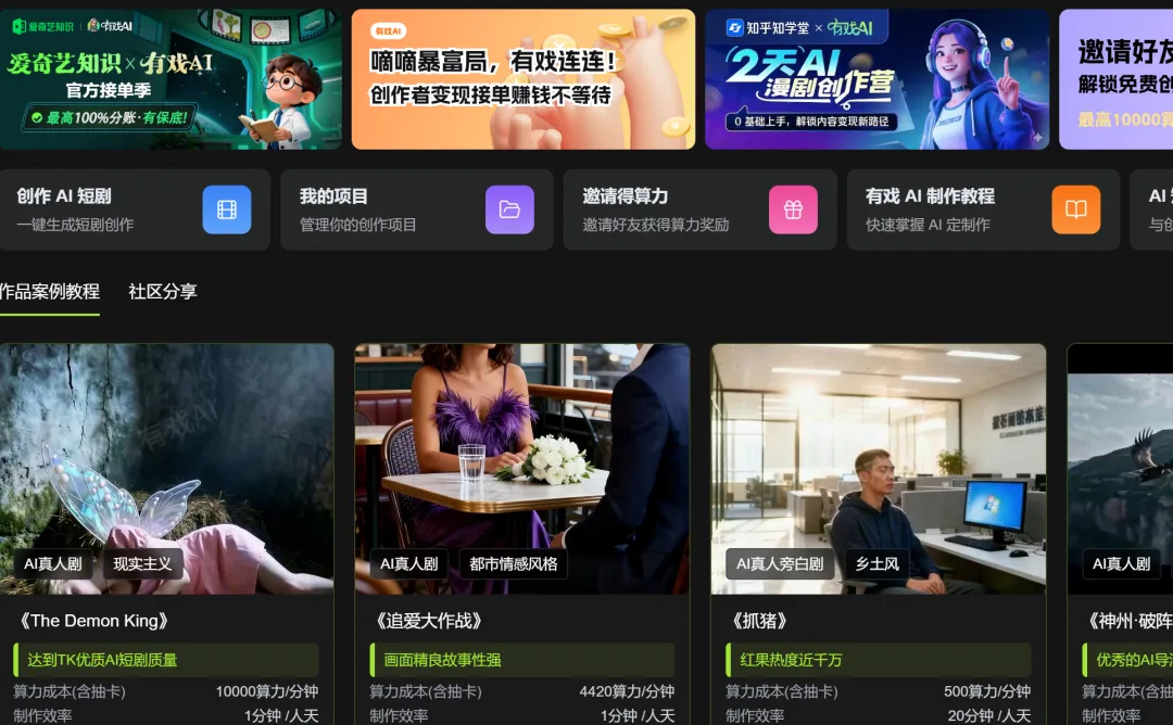 榜单说再多,不如自己跑一集。想要尝试 AI 短剧创作的新手,可以通过官网https://youxi.fullpeace.net/login?code=6nTan 注册,注册时输入邀请码6nTan,领取200算力,用有戏AI做一集完整的短剧。你会发现,综合实力第一的含金量,跑一遍就知道了。