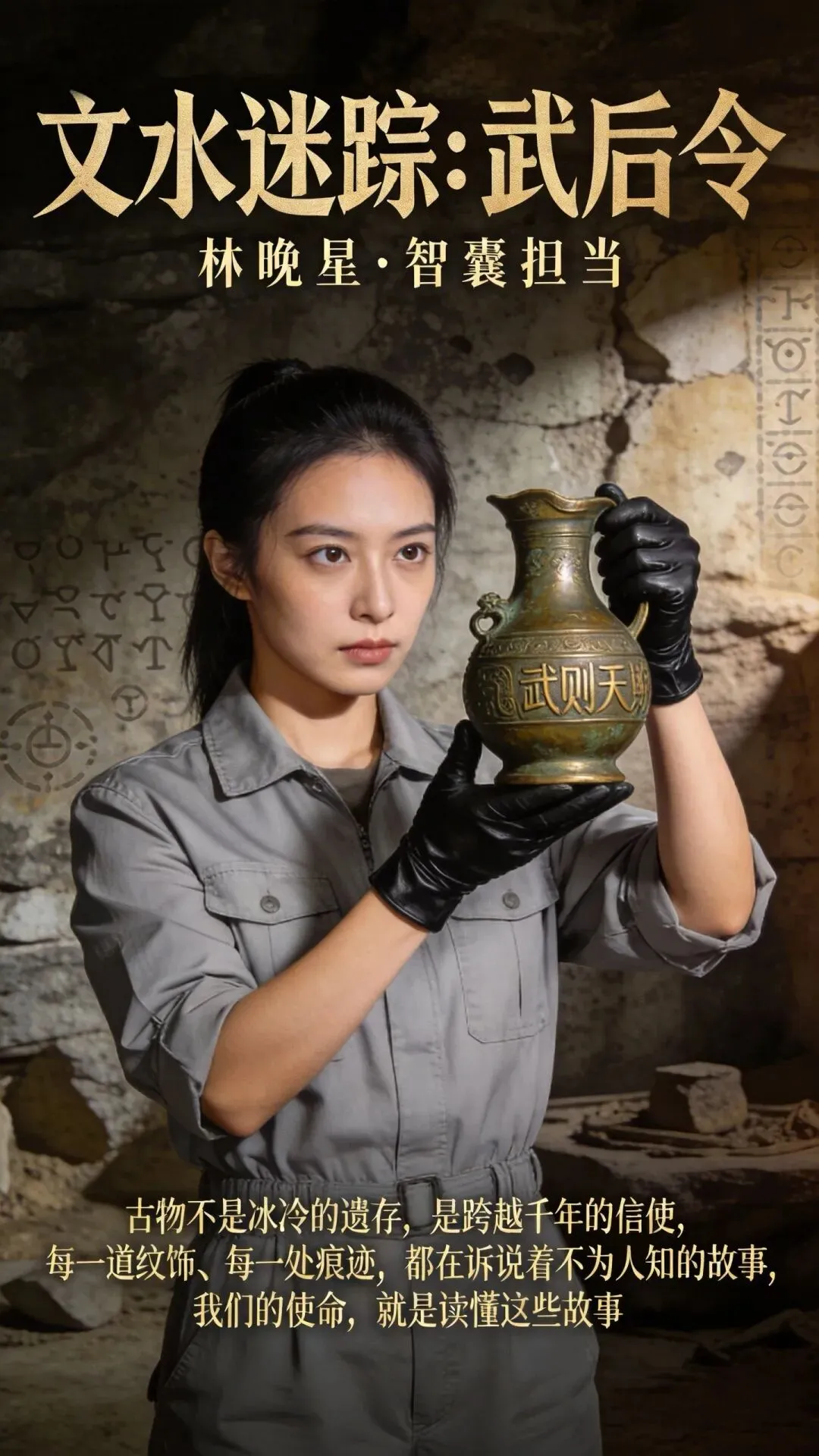 现实:林晚星带领考古队在文水则天圣母庙附近勘探,意外挖出一只刻有“武后乡”字样的青铜古壶,壶身纹饰诡异,疑似唐代宫廷器物。武景明(武氏后裔,守庙人)赶到,阻止考古队继续挖掘,声称古壶是武氏祖传之物,二人争执不休,火药味十足。