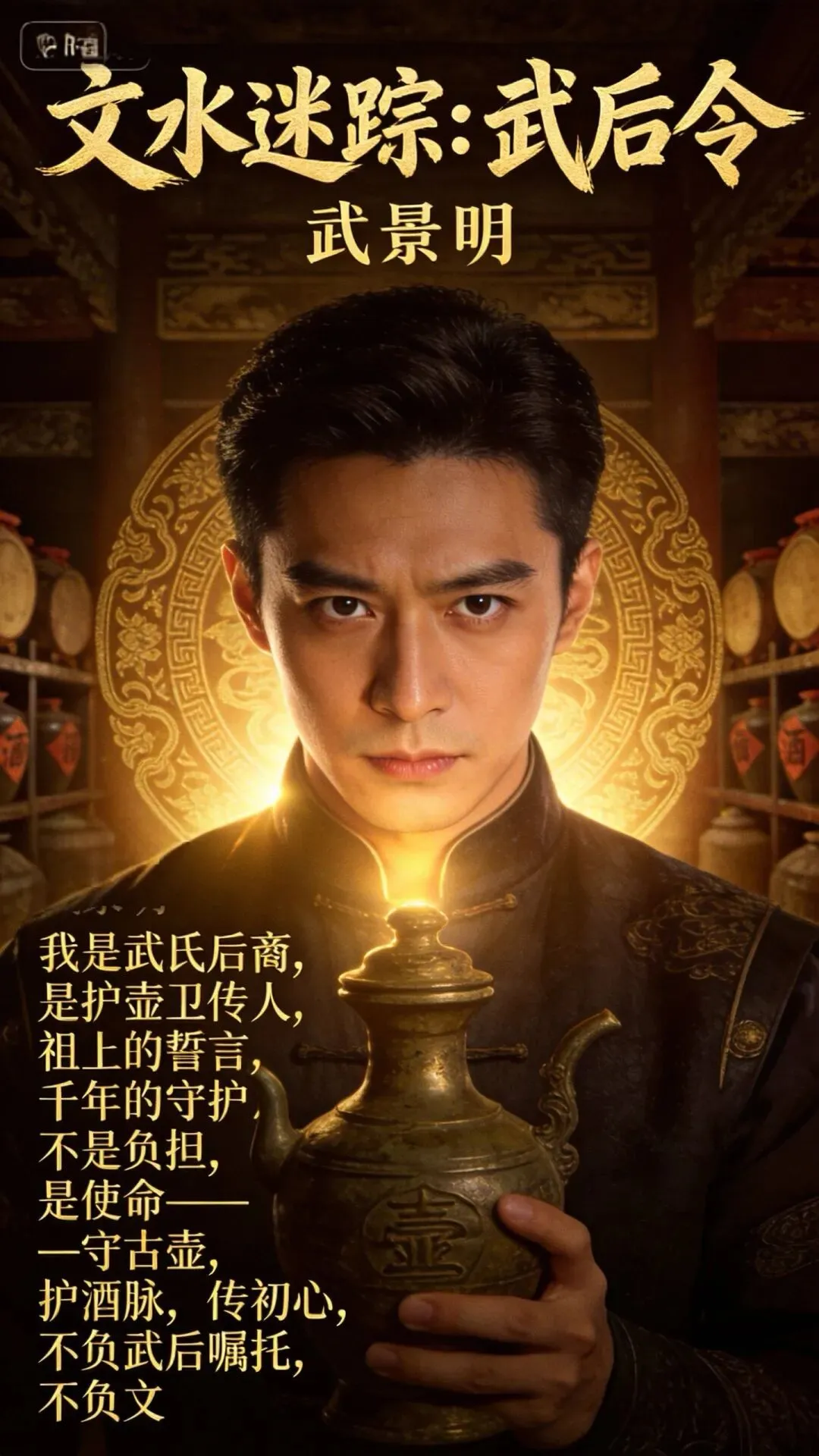 现实:林晚星请考古界泰斗陈老解密古壶,陈老鉴定出古壶是武后省亲时的御用酒器,壶身纹路记载的是武后“抓酿赐名”的典故,同时发现古壶底部有“武顺”“林默”字样,推测二人是当年武后的贴身酿酒师与护卫。武景明得知后,深夜潜入考古队驻地,试图偷走古壶,被林晚星当场抓获,二人再次激烈争执,武景明言辞闪烁,不愿提及祖上与武顺、林默的关系。