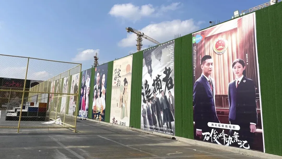 “临影厂”影视基地摆设的短剧海报 澎湃新闻记者 吴雨欣 摄