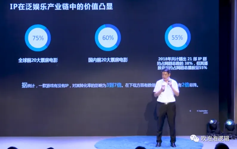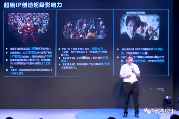 随便截几张童之磊2019年的讲话视频,不难看出,他眼里不仅仅是中文小说、短剧、数据要素这些碎片,而是聚焦中国数字出版行业,以IP为核心,试图打造中国的超级IP生态。发言中学习和借鉴的对象都是迪士尼、漫威,作品举例都是复仇者联盟、星球大战、哈利波特、迪士尼。