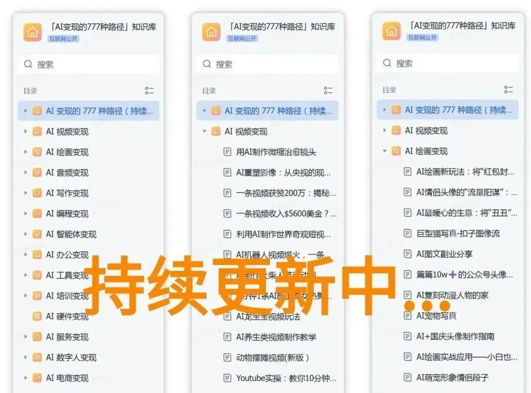 我们近3年来,在全网付费收集整理的《AI 变现的 777 种路径》,正在持续更新中,