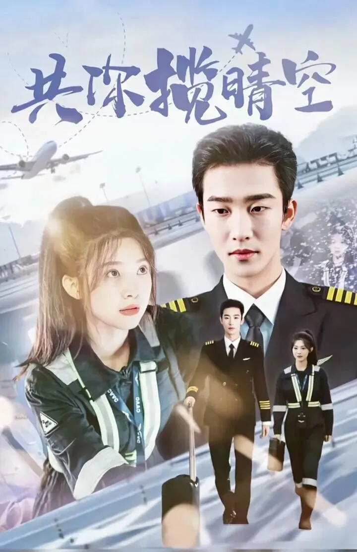 4. 高空浪漫:两人在飞机驾驶舱或机舱内的温馨互动,配上蓝天背景,简直是“空乘恋机长”的理想范本。