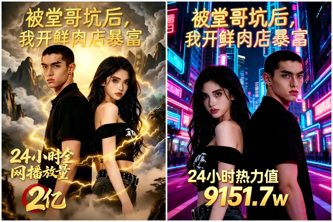 重磅捷报!浙江铭兴文化传媒有限公司(铭兴映画)旗下自制短剧、独家宣发《被堂哥坑后,我开鲜肉店暴富》,上线仅 24 小时,全网累计播放量强势突破 2 亿,热力值持续稳定在 9151.7 w,登顶抖音真人 AI 榜前列,成为短剧赛道又一现象级标杆作品!