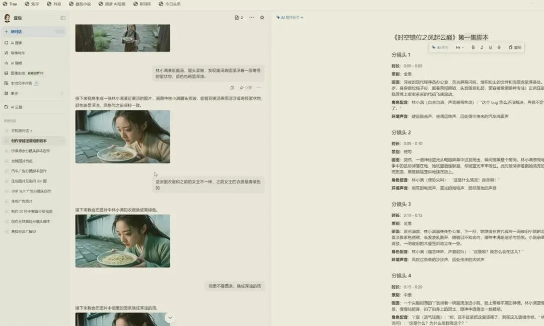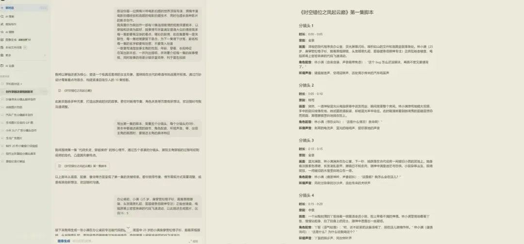 当你确定了故事核心后,就可以让AI帮你把它变成具体的剧本和脚本了。建议分三步进行,这样生成的内容更可控。