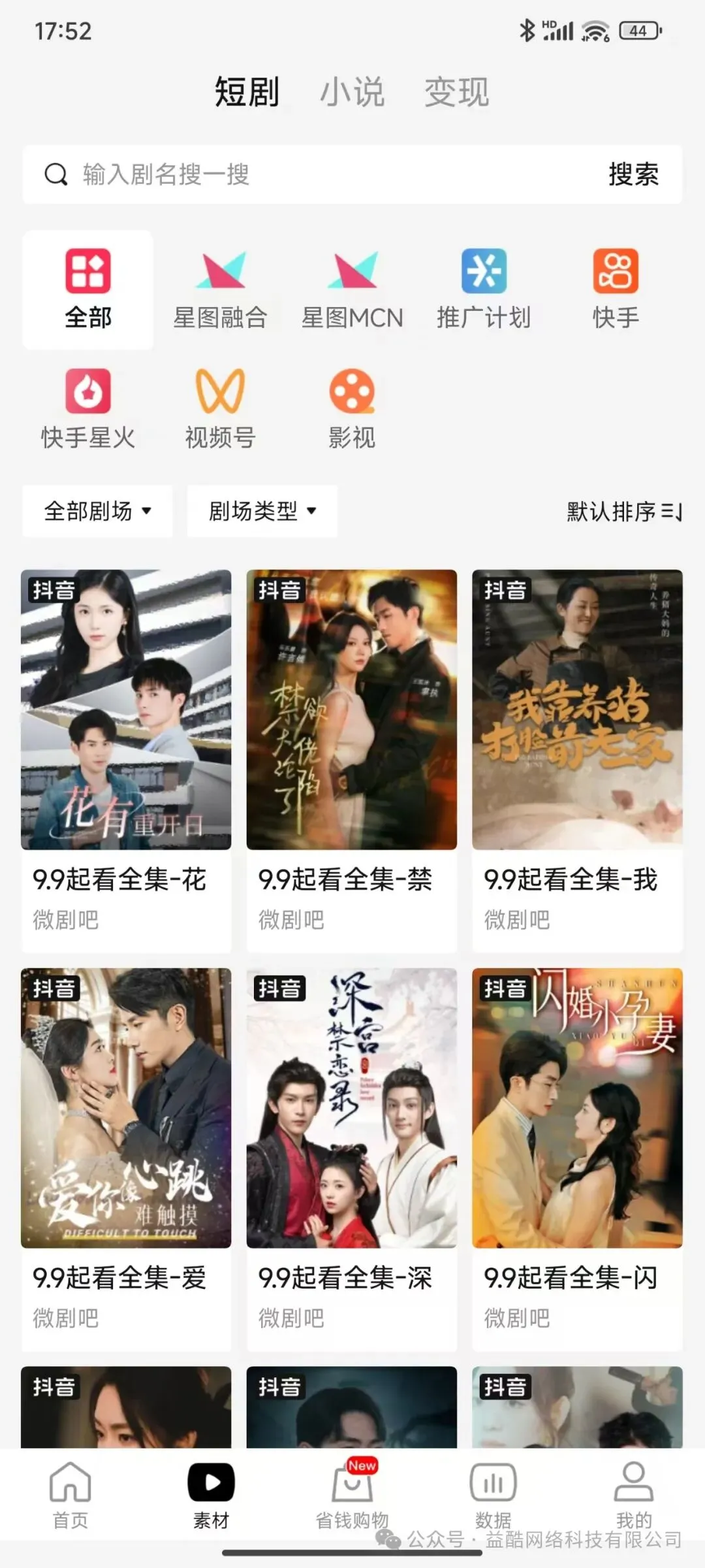 绑定推广账号并获取授权:登录好省APP后,按提示绑定抖音、快手、视频号等推广账号,完成绑定后即可获得短剧推广授权,可免费下载平台内所有短剧素材。需注意,抖音推广需满足500有效粉丝才可挂载小程序,不足500粉可先从快手、视频号入手(无粉丝要求)。