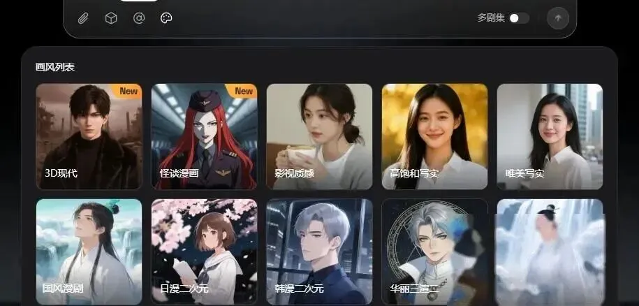 底下还有几个配置项,包括主体选择、画风偏好、是否开启多剧集模式。拿不准的话,默认设置就够用。