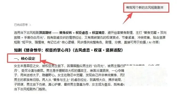 说实话,我自己没动手写。直接让豆包帮我生成了一段剧情描述,复制粘贴进去就完事了。