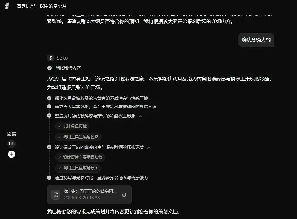 seko最大的价值就是把AI短剧制作的全链路整合到了一起。从输入创意到输出成片,不用在多个软件之间反复切换,也不用操心格式兼容、素材导入导出这些琐碎问题。