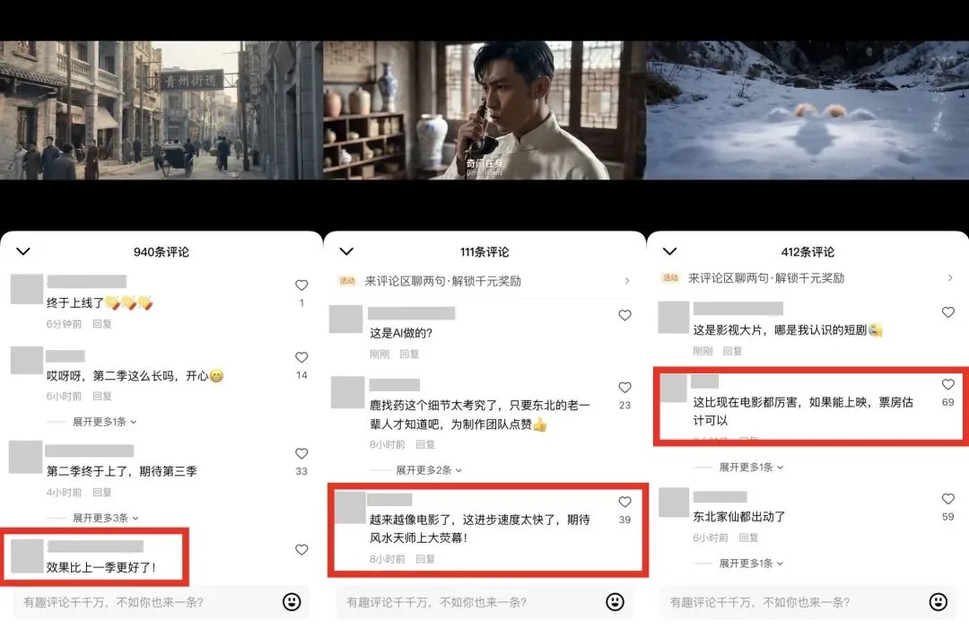 老观众津津乐道:“效果比上一季更好了!”新观众则一边疑问“这是用AI做的?”,一边惊叹:“比现在的电影都厉害!”