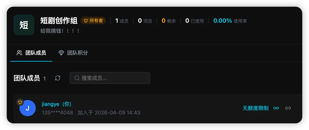系统会自动记录本次生成任务由哪位成员发起,消耗了多少算力积分,为团队管理提供透明数据。