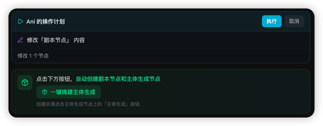 接下来只需要依次点击「执行」按钮,它就会将剧本内容填充到剧本节点。