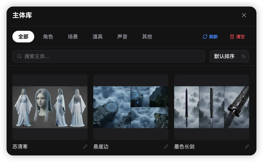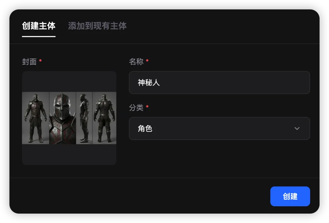 接着需要将生成的形象一键保存至团队共享的 「标准化主体库」,方便后面生成使用到,一定要分门别类,将角色、场景和道具分开,逐个命名。