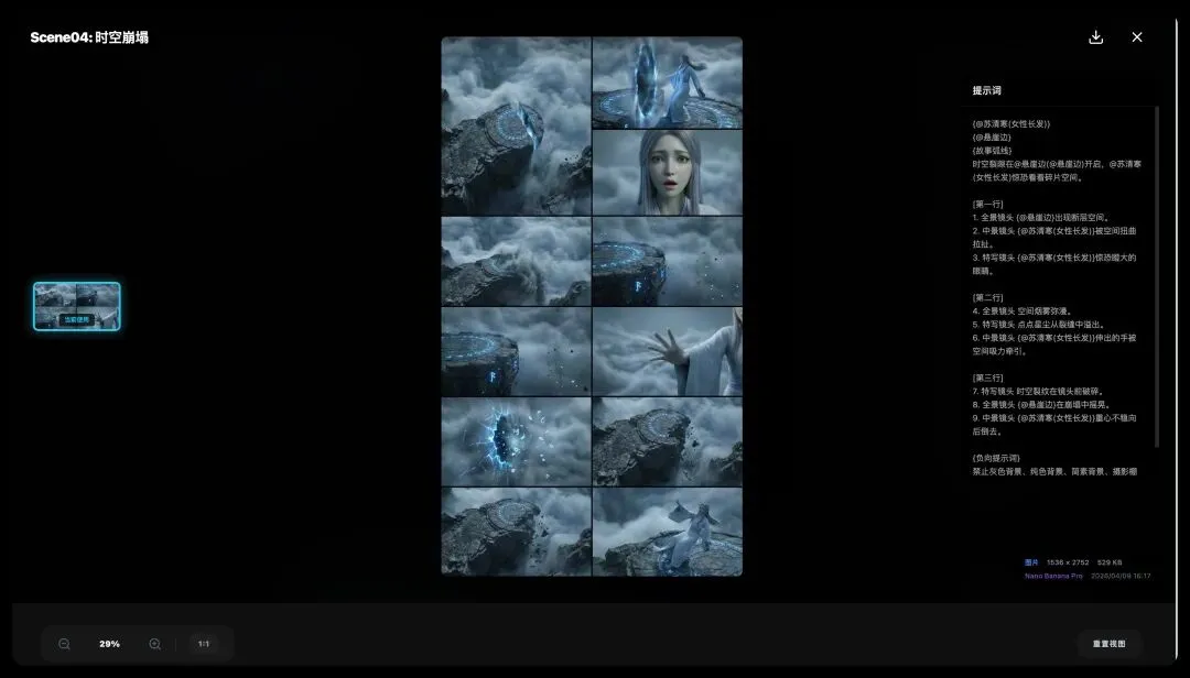 每一张分镜图也可以点开进行二次编辑,重新生成。