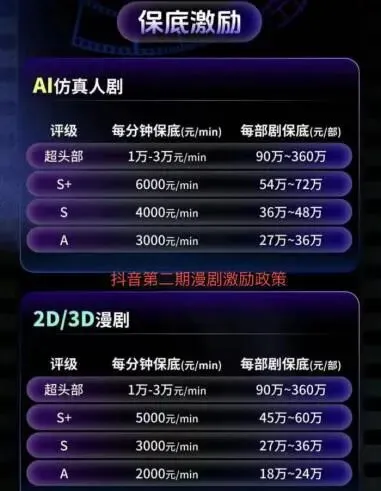 •AI漫剧(2D/3D):S+级6000元/分钟,单部最高150万