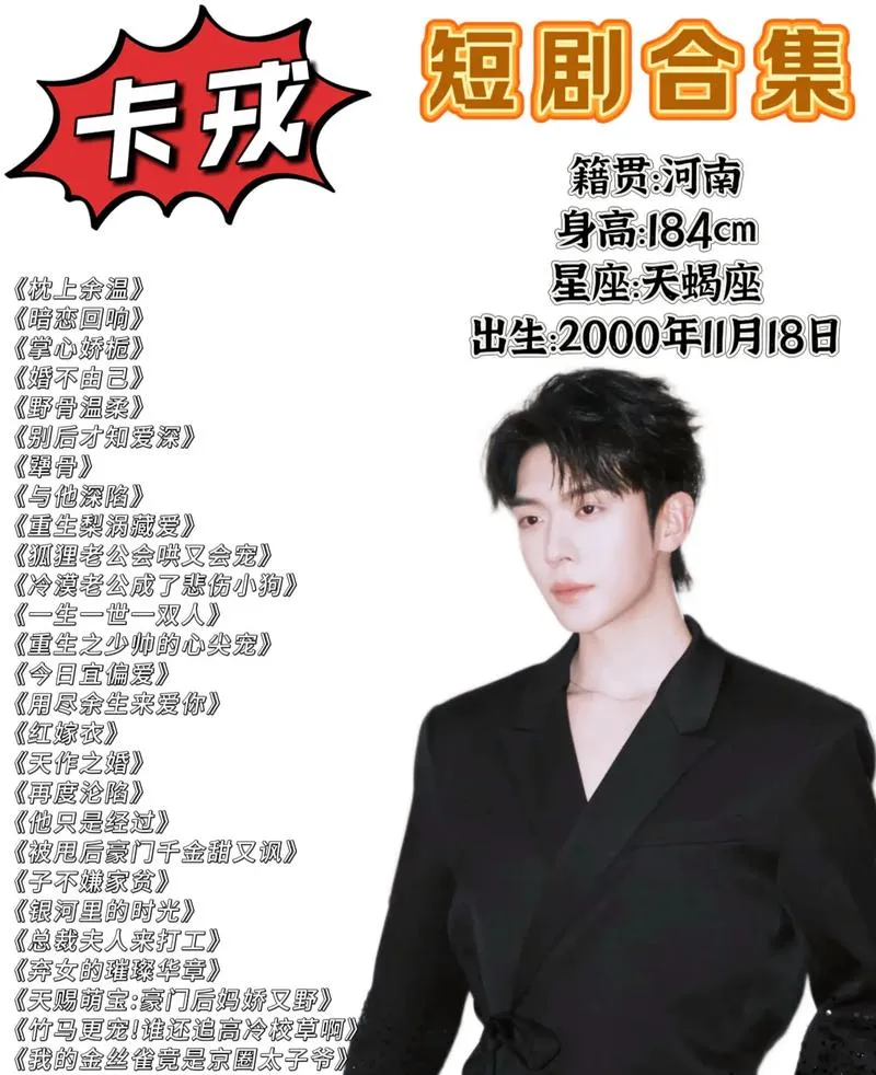 他最近的出圈,几乎是肉眼可见的。尤其是“人夫感”这条赛道,真被他演出了辨识度。霸总不是没人演,成熟型男主也不是没人碰,但能把那种克制、稳重、能给人安全感的气质演得不油不腻,不多。短剧观众其实很直接,喜欢就是喜欢,不喜欢也不会强留。卡戎能稳住位置,靠的不是单一标签,而是角色适配度。人夫霸总能演,别的类型也能接,戏路一打开,热度自然不会只停留一阵。