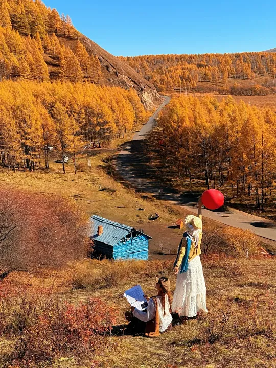 藏在阿尔山国家森林公园的蓝房子,曾是林业工人的休憩工棚,如今是春日里最出圈的文艺地标。纯净的蒂芙尼蓝外墙,搭配原木色门窗,在初绿的白桦林、消融的残雪与澄澈蓝天的映衬下,宛如北欧童话里的小屋。