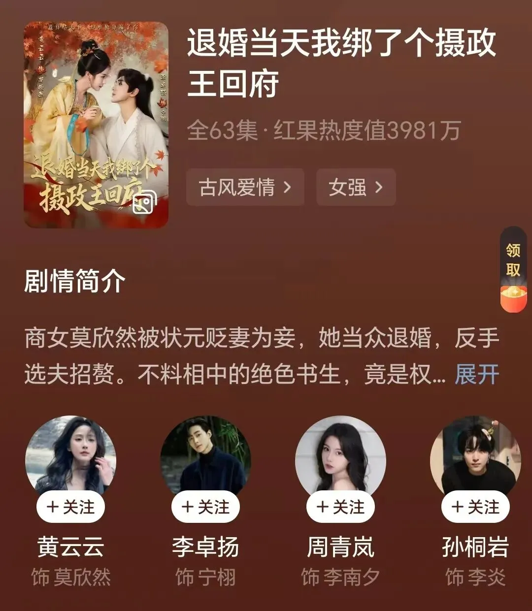 这剧情是不是很熟,红果果有无数这本子,和离或定亲或有对象,渣男出轨渣女,女主怒而找了新欢。各种变异版本:现代+古代+民国+仙侠......数不胜数。为什么看呢?颜控党嘛,咳咳!李卓扬+黄云云,男帅女美,和我一样颜控的可以看到26集(嗯,吻戏唯美,古装剧里快速吃肉的幸福王爷:坐标17集),就可以跳到大结局了。对!要听劝!