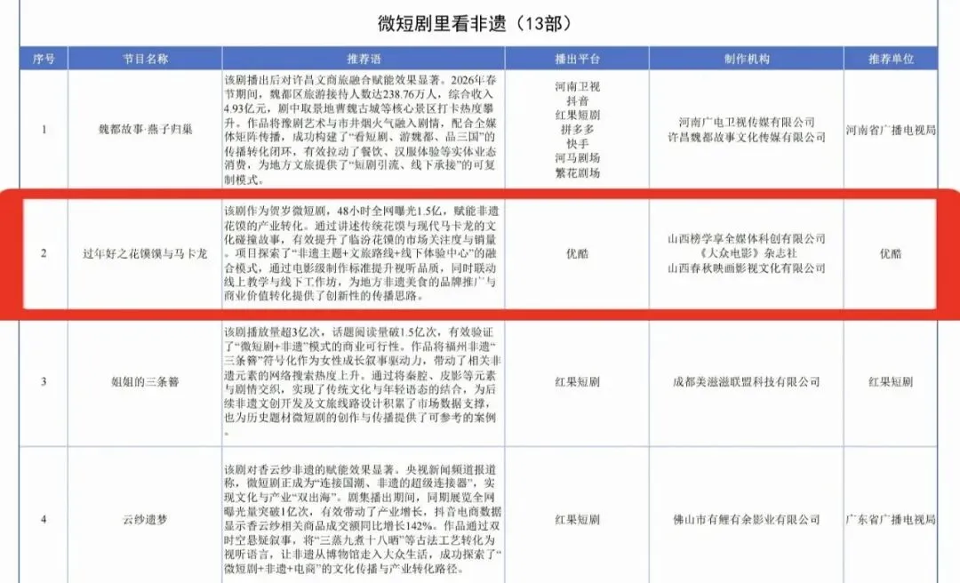 基地企业推出的两部微短剧作品《鹦鹉》《过年好之花馍馍与马卡龙》凭借独特的题材与深刻的社会价值备受关注,于2026年网络视听大会中荣获奖项。