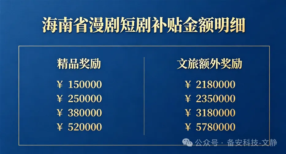 - 文旅融合专项奖励:作品融入海南风光、人文地标、本土文化元素,获得省级推优认证,单部额外追加 5 万元