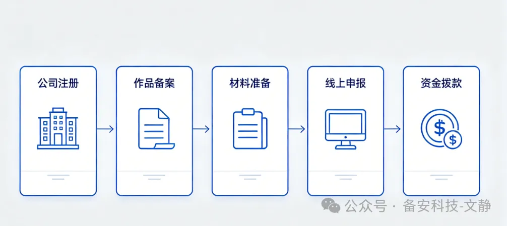海南所有补贴均为事后资助,项目上线、出海完成、产生经营数据之后申请,全程线上申报,流程简单清晰。