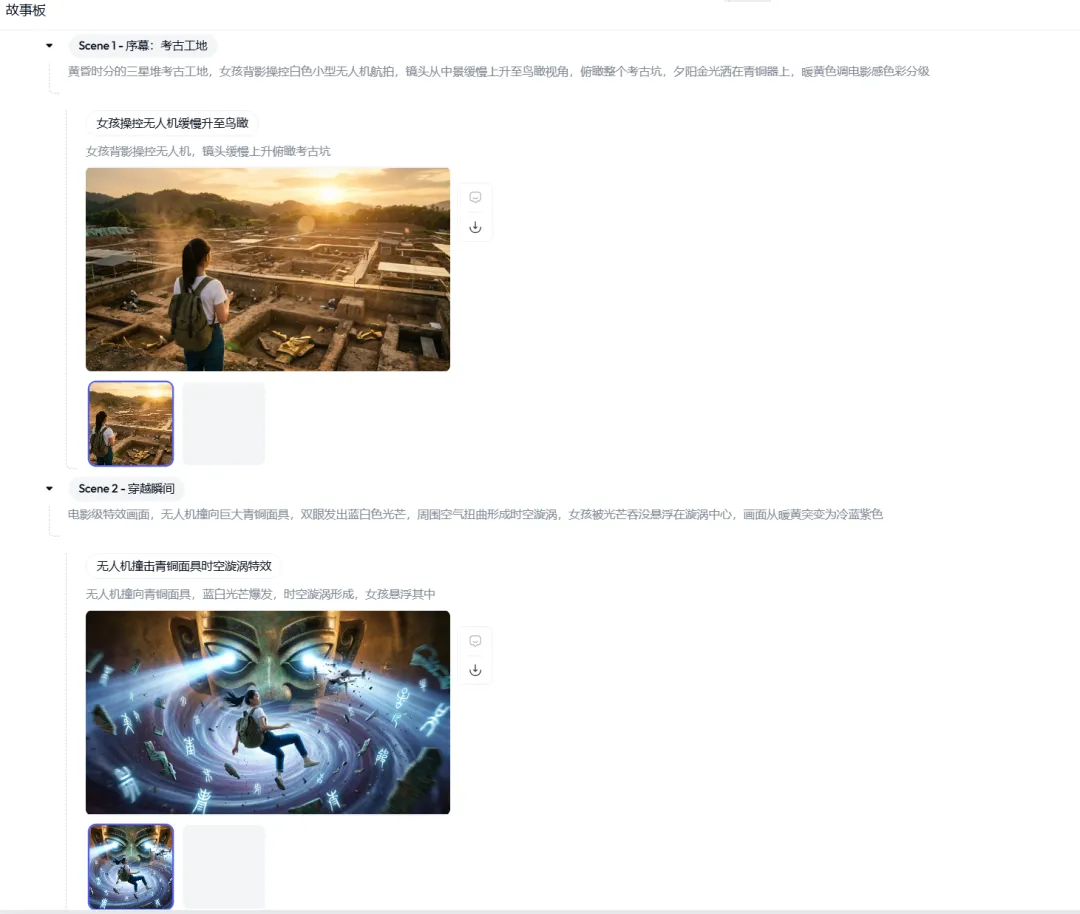 接着,进入Skywork Super Agent,https://skywork.ai/,继续创作这个背景故事:一个叫"林小夏"的女孩,正在三星堆考古,操控无人机的时候撞上一面青铜面具,然后穿越到了远古洪荒,遇见了伏羲画八卦。