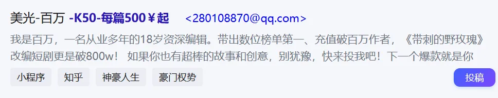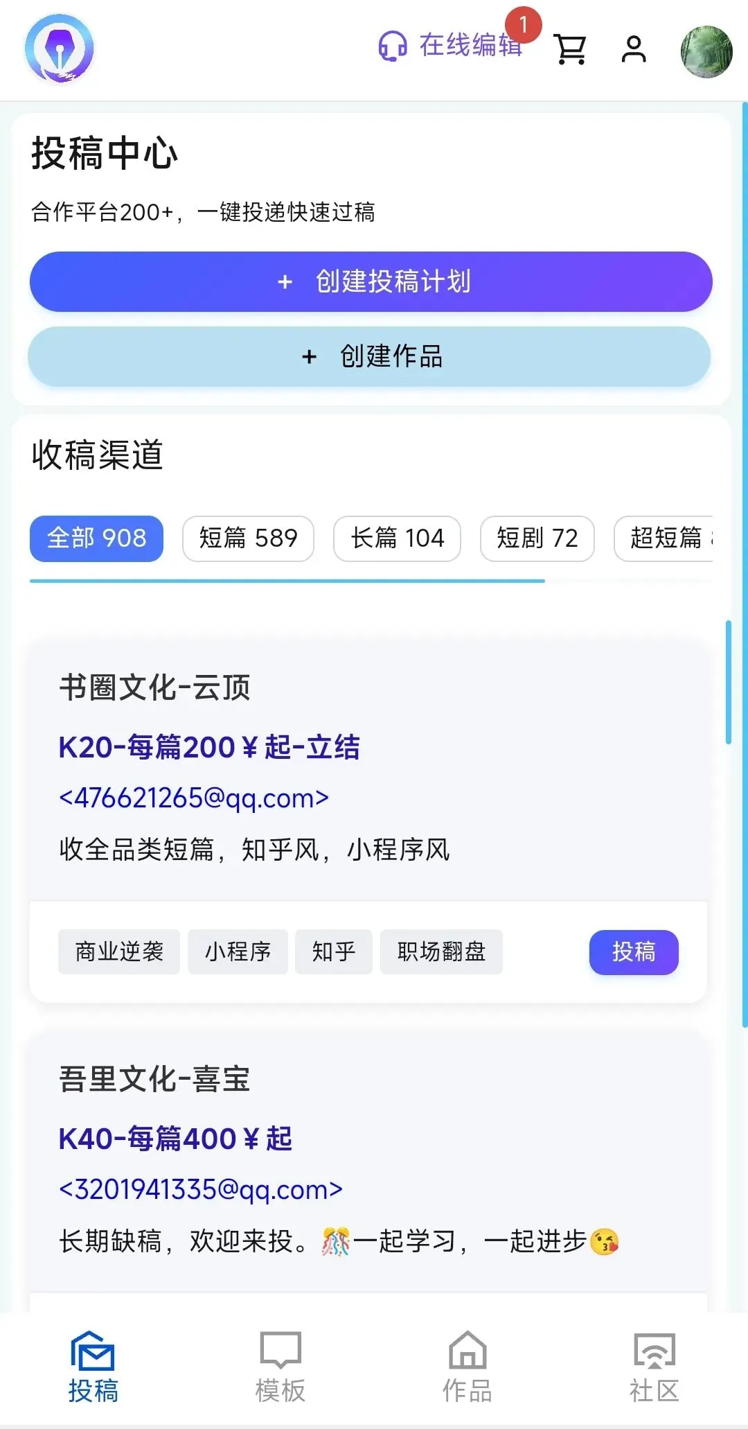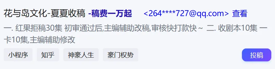 以上就是短剧标准格式和部分短剧投稿渠道的整理,篇幅有限没有一一列出。如果想要更多,请移步主页下方【投稿中心】,200+多家正规投稿渠道,包含短篇、长篇、剧本、漫剧。帮助新手少走弯路!