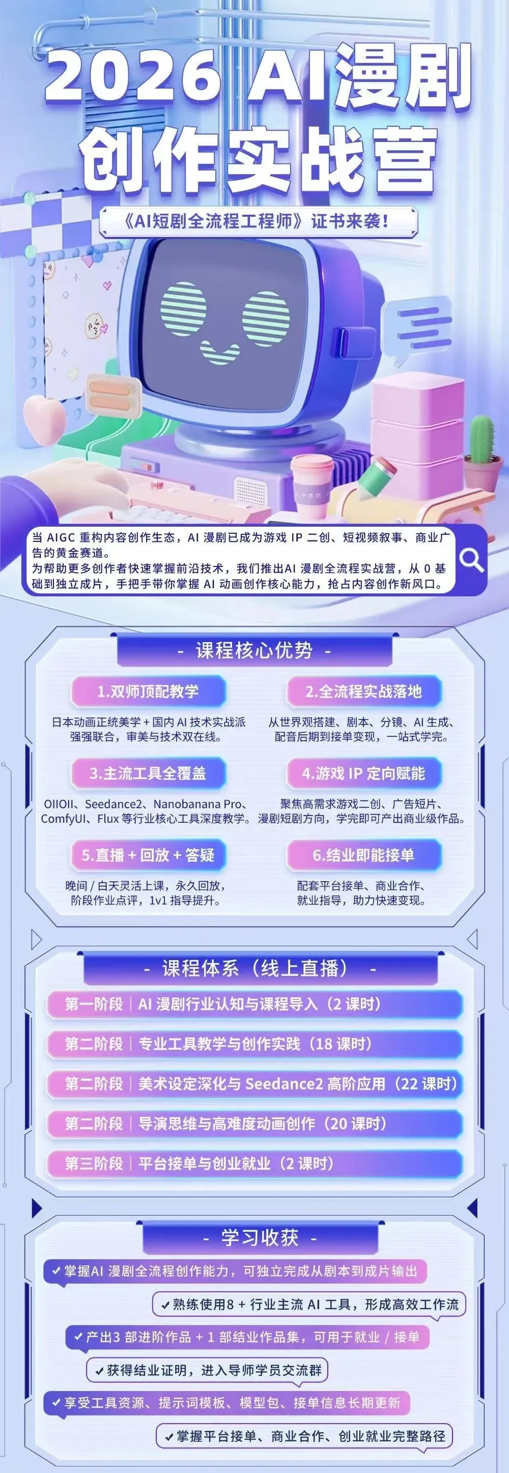 掌握了AI短剧相关技能,还可入驻短剧制作平台、自由职业平台,稳定获取长期订单,实现居家灵活创收。