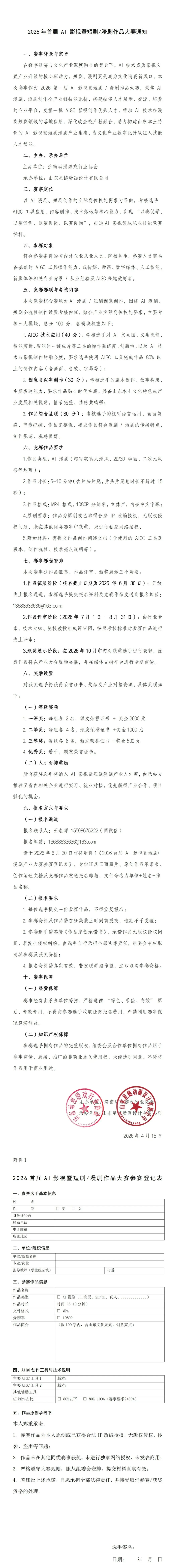>2026 年首届 AI 影视暨短剧/漫剧作品大赛通知