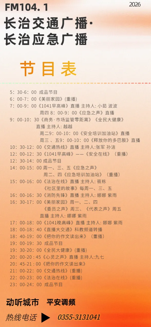 (图片、视频版权归原作者所有,如有侵权请留言联系编辑删除)点击“阅读全文”,直接收听长治交通广播·长治应急广播节目