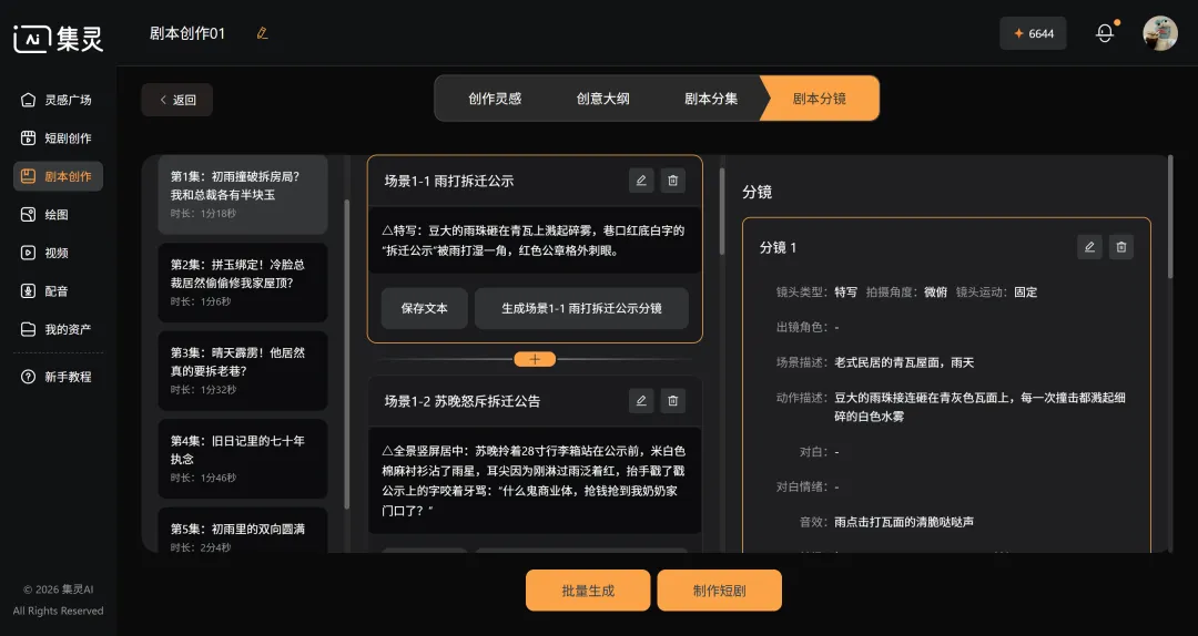 无论你是专业创作团队、自媒体创作者,还是企业内容运营方、个人短剧爱好者,集灵 AI 都能打造适配的低成本、高效率、高质量短剧生产体系。