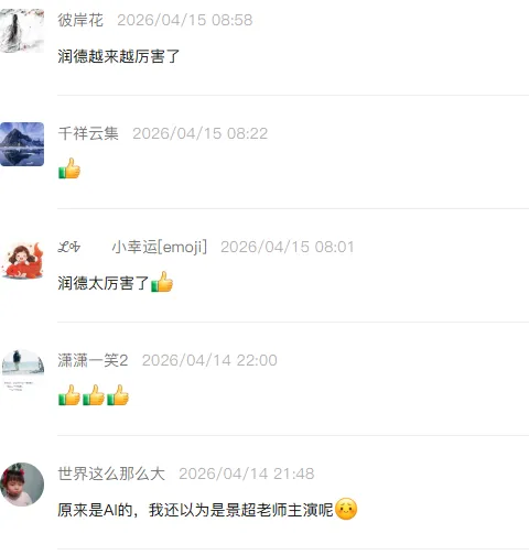 “原来是AI短剧,还以为是景超老师主演,惊喜!”